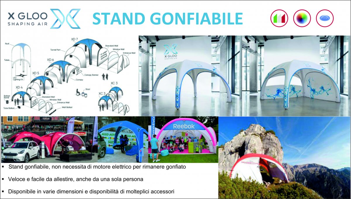 | Versione con tetto personalizzato completamente stampato in digitale: Colori disponibili per le gambe gonfiabili: nero, bianco, grigio, rosso, blu. |